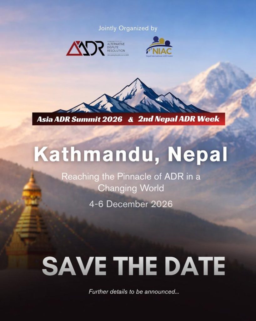 The Asian Institute of Alternative Dispute Resolution (AIADR) and the Nepal International ADR Centre (NIAC)are pleased to announce the Asia ADR Summit 2026 and the 2nd Nepal ADR Week, a landmark international event dedicated to advancing the field of Alternative Dispute Resolution (ADR).